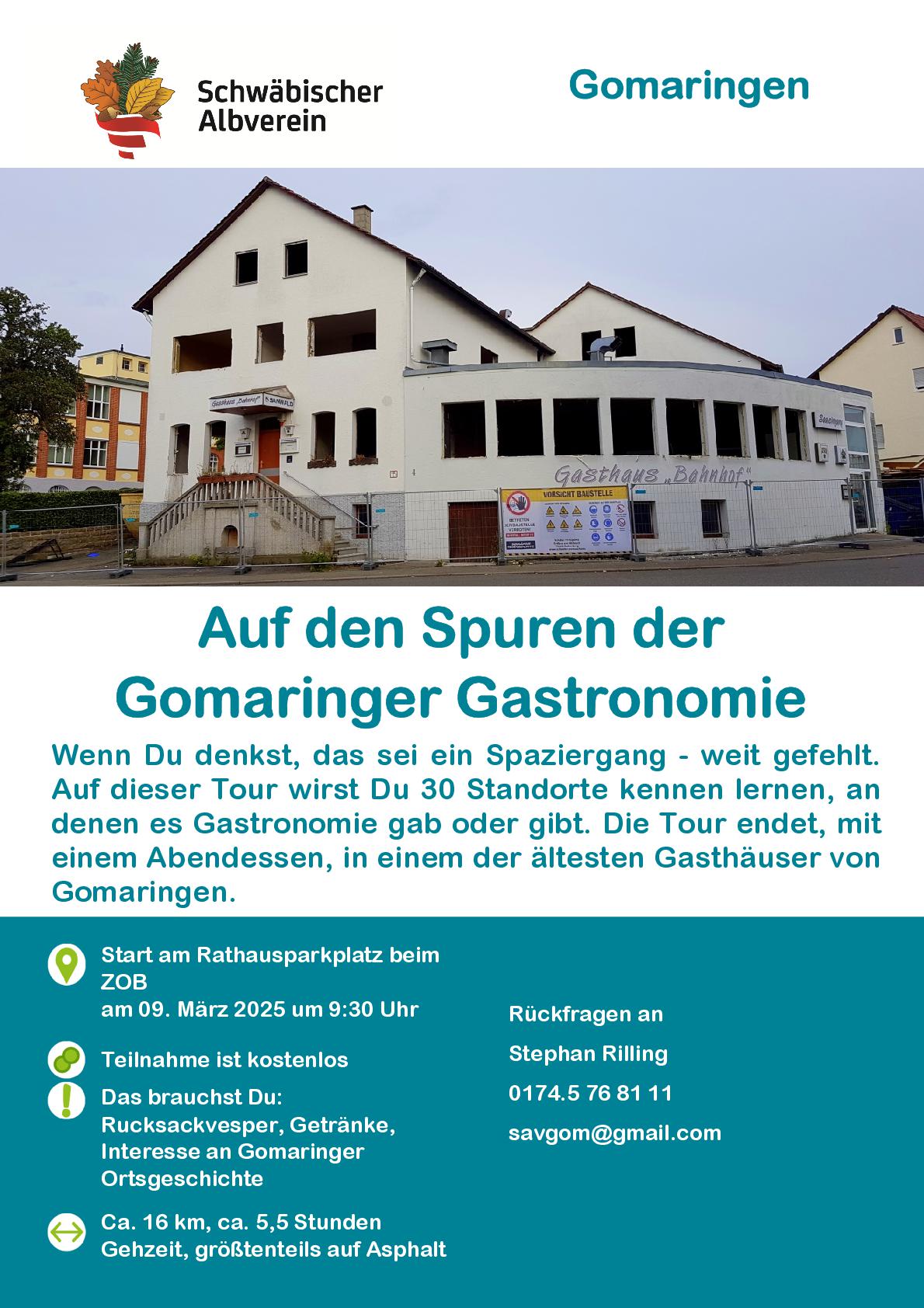 Auf den Spuren der Gomaringer Gastronomie – Wanderung So., 09.03.2025, Uhrzeit: 09:30 iCalendar Mit dem Laden der Karte akzeptieren Sie die Datenschutzerklärung von Google.Mehr erfahren Karte laden Google Maps immer entsperren zur Übersicht