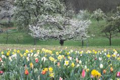 Und dann geht es längs der Straße nach Gönningen, wo an diesem Tag der Tulpensonntag mit blühenden Tulpen auf dem Gönninger Friedhof, Kunsthandwerkermarkt im Zentrum und reichlich Bewirtung durch die Gönninger Vereine stattfindet.