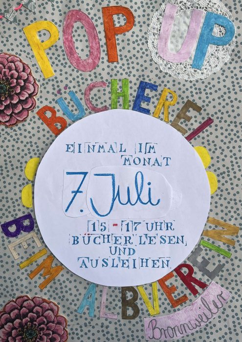 Gleich zweimal gibt es im Juli Pop-Up!-Bücherei beim Albverein. Einmal am Montag, den 7. Juli und noch einmal vor den großen Ferien am Montag, den 28. Juli. Jeweils von 15 bis 17 Uhr für alle und morgens von 9:30 bis 10 Uhr für die Kinder des Kindergartens Bronnweiler. Wir immer Lust auf Sommerlektüre oder Bücher zum Vorlesen hat, ist herzlich zu einem Besuch eingeladen.