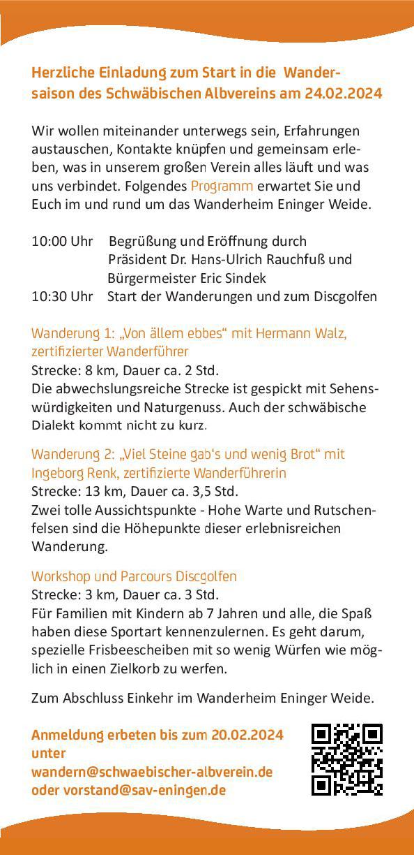 Am 24. Februar ist Start in die Wandersaison des Schwäbischen Albvereins an der Eninger Weide.