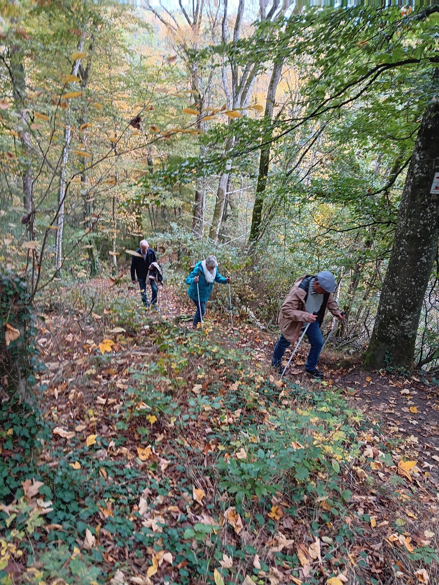 Auf abwechslungsreichen Geländeformen wie urigen Wäldern, Steilhängen, Felswänden, gewellten Hochflächen mit Weitsicht auf den Albtrauf und den Hohenzollern und in den namensgebenden sieben Tälern konnten neun Wanderlustige ihre Fitness testen. Nach einem gemütlichen Start durch den Kurpark von Bad Niedernau ging es auf schmalen Pfaden bergauf. Dann wechselten sich Graswege mit breiteren Fahrwegen ab, ehe wieder felsige und durchwurzelte Pfade Trittsicherheit erforderten, insbesondere in der Wolfsschlucht. Entlang der Route gab es immer wieder Interessantes zu entdecken, so ein großer Kalkbrennofen bei der Katzenbacher Ziegelhütte. Im kommenden Jahr werden wir sicher die Tour mit unseren Enkeln wiederholen, und dann Fahrradhelm, Stirn- und Taschenlampen mitnehmen, um die 207m lange Sieben-Täler-Höhle zu erkunden, an der wir dieses Mal vorbeigegangen sind. – Mit einer gemütlichen Einkehr im Hirsch in Rottenburg endete diese schöne Tour, die Dieter Leyhr gut vorbereitet und umsichtig geführt hat. Wir danken Dieter sehr herzlich und freuen uns auf weitere Wanderungen mit ihm!