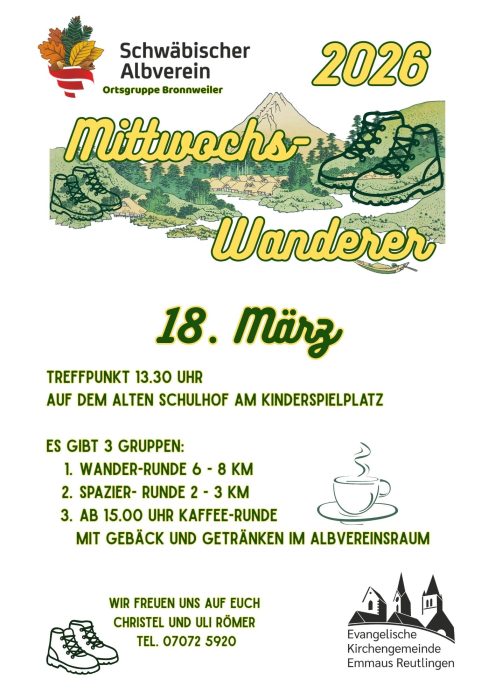 Der Schwäbische Albverein und die Evangelische Kirchengemeinde Bronnweiler laden zum gemeinsamen Wandern ein.